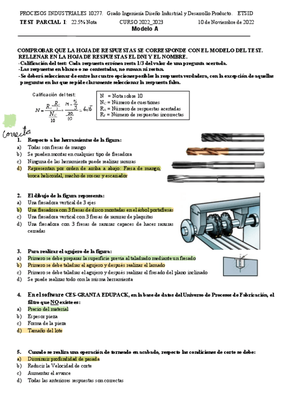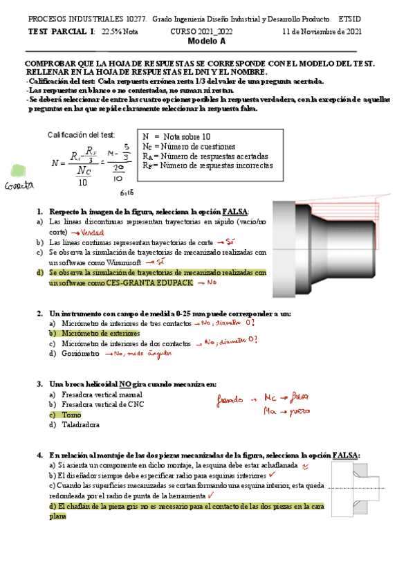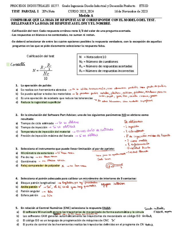 He publicado nuevos examenes de 3º Procesos Industriales: Resolución 1er parcial test 2021-2024