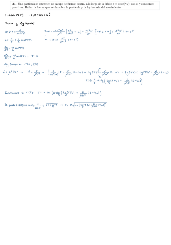 Ejercicios de mecánica hechos en clase del tema 2 (el problema de los cuerpos)
