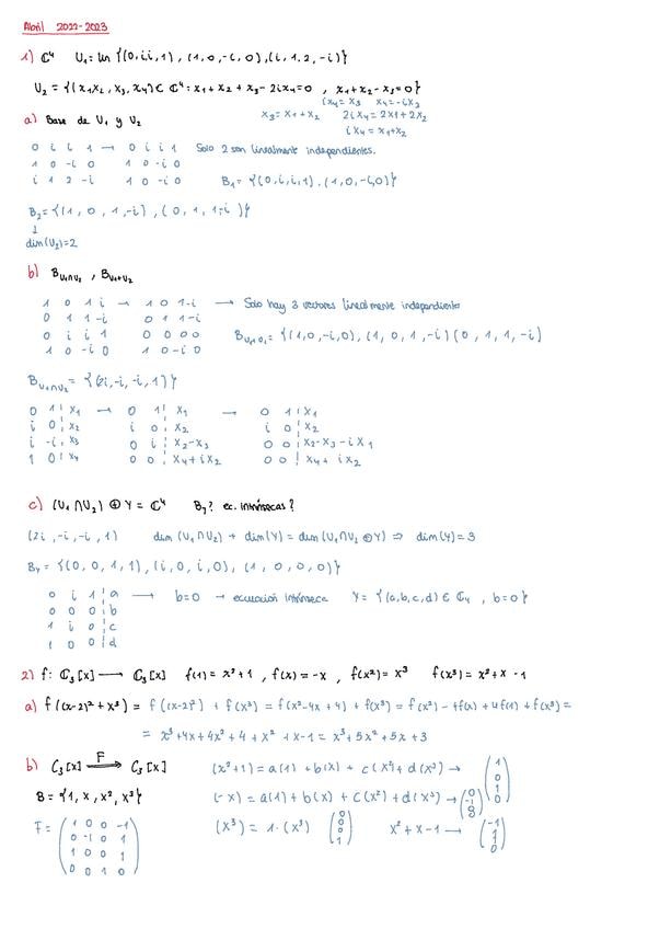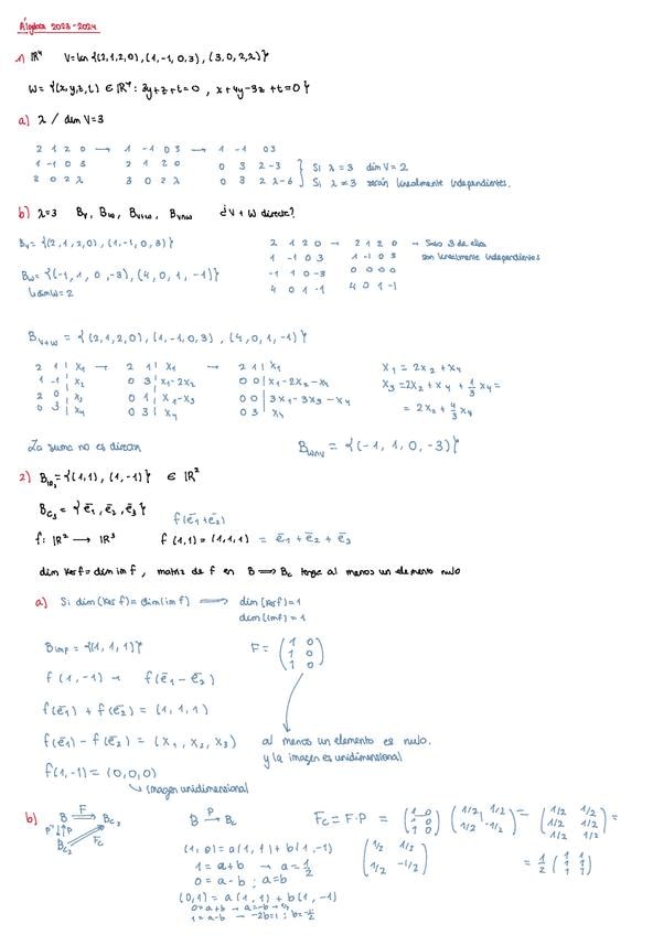 Exámenes resueltos álgebra años anteriores