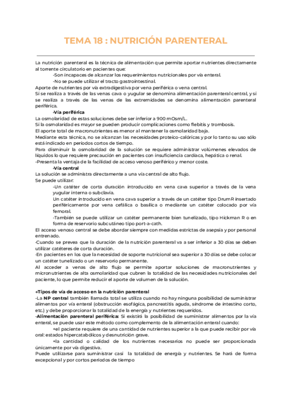 He publicado nuevos apuntes de 1º Alimentación, Nutrición y Dietética: TEMA 18 NUTRICION PARENTERAL.pdf