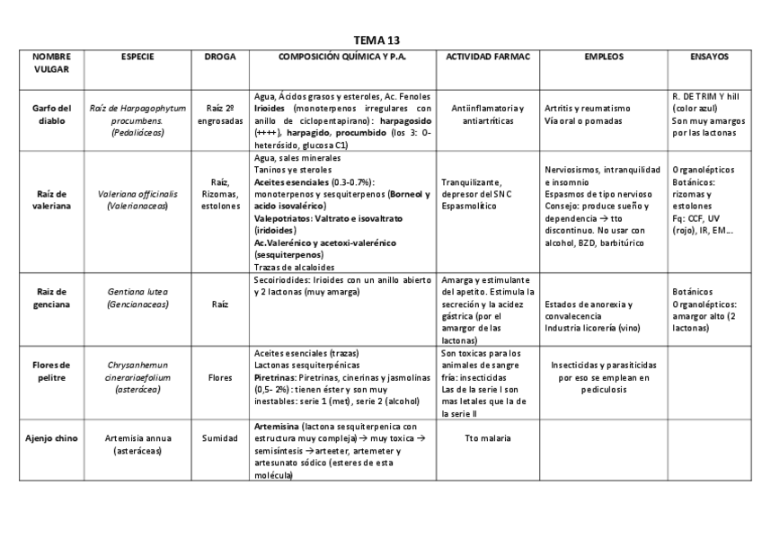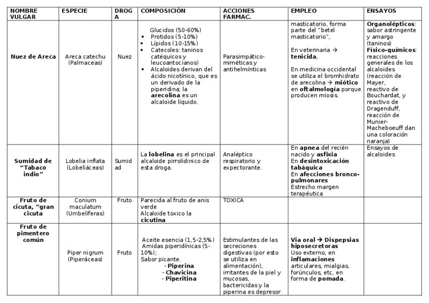 He publicado nuevos apuntes de 4º Farmacognosia: TABLAS 2º PARCIAL RESUMEN PARA EXAMEN