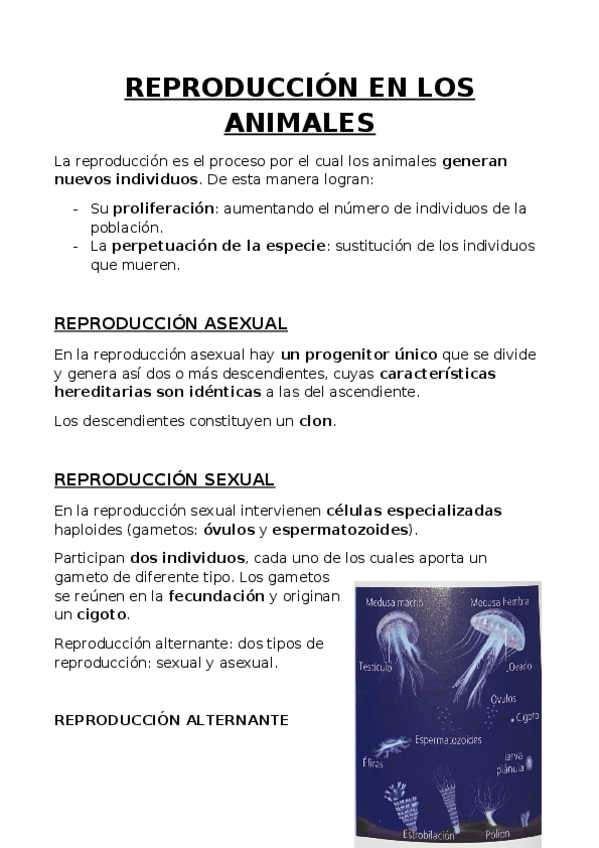 Apuntes de biología de 1º de Bachillerato sobre la reproducción en animales. Imágenes y fotografías incluidas.