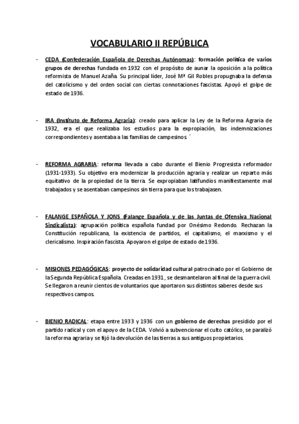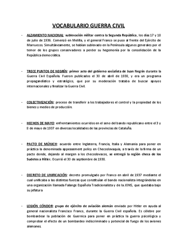 Vocabulario EBAU Historia de España