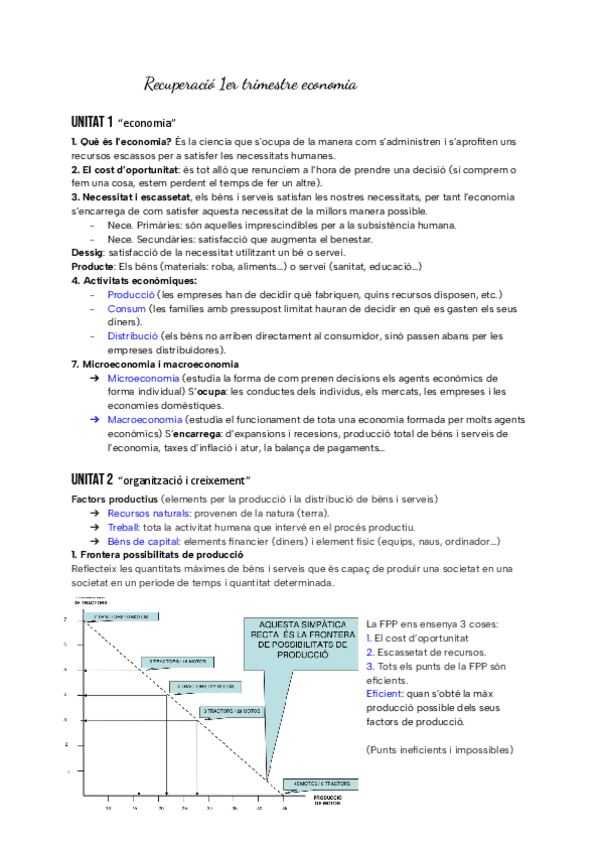Organització i creixement, microeconomía, macroeconomía, FPP, sistemes econòmics, producción i distribució