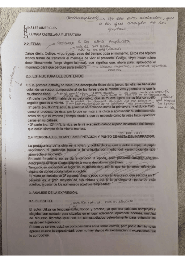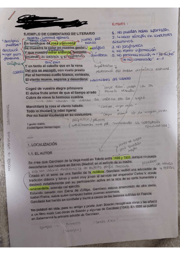 EXAMEN comentario de texto Garcilaso De la Vega: SONETO XXIII