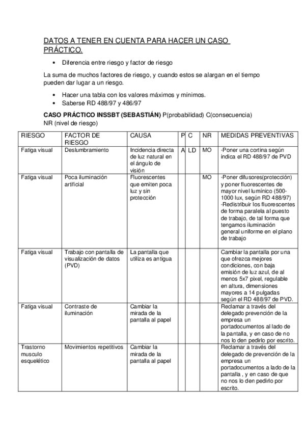 He publicado nuevos apuntes de 2º Ergonomía Visual y Prevención de Riesgos Laborales: DATOS A TENER EN CUENTA PARA HACER UN CASO PRÁCTICO.docx