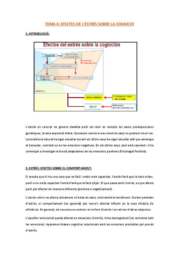 TEMA 6 - EFECTES ESTRÈS SOBRE COGNICIÓ