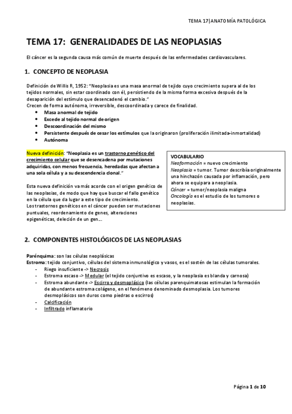 He publicado nuevos apuntes de 3º Anatomía Patológica General y Especial: TEMA 17_GENERALIDADES NEOPLASIAS 2022/23.pdf