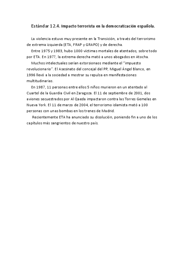 He publicado nuevos apuntes de Historia de España: Resumen Bloque 12 de Historia