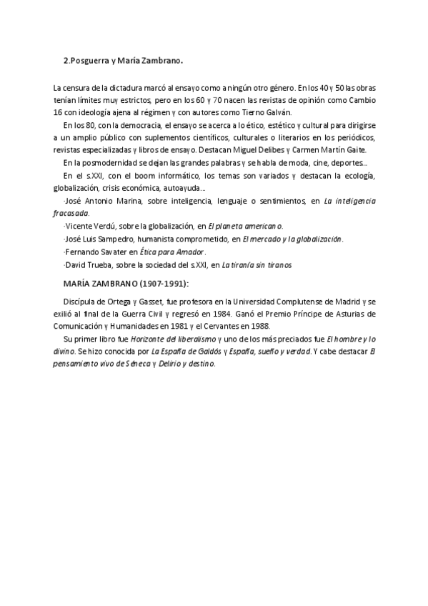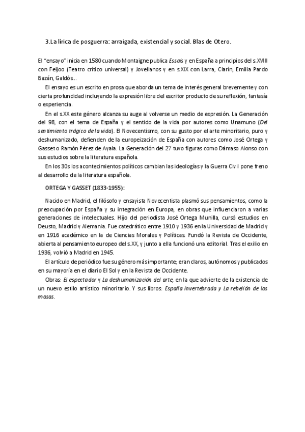 He publicado nuevos apuntes de Lengua Castellana y Literatura II: Resumen ensayo siglo XX