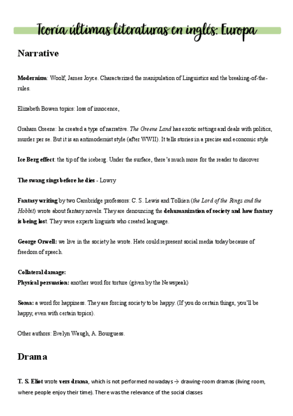 He publicado nuevos apuntes de 3º Últimas Literaturas en Lengua Inglesa 1: Europa: Teoria.pdf