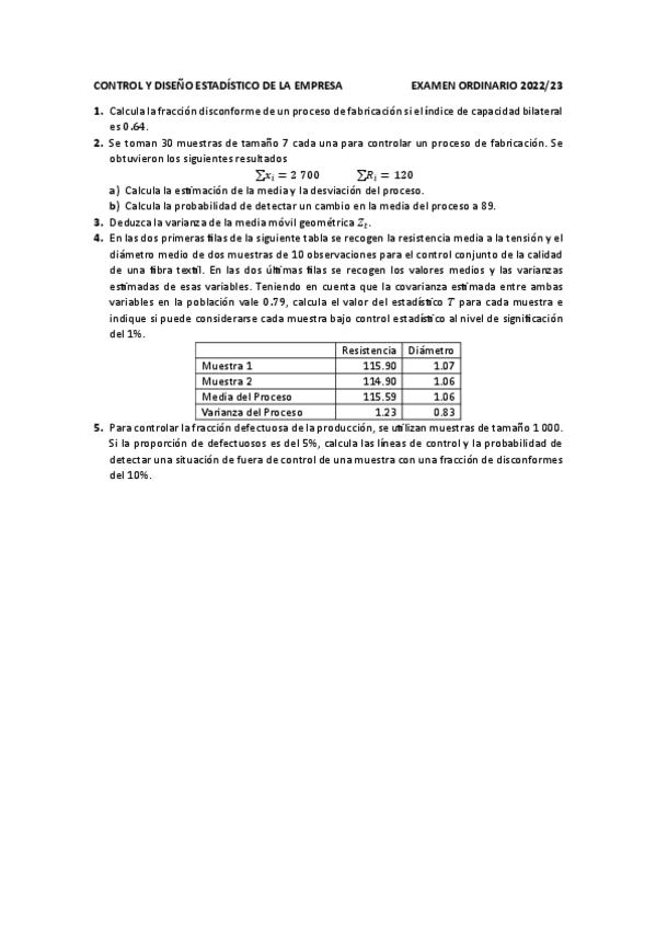 He publicado nuevos examenes de 4º CONTROL Y DISEÑO ESTADÍSTICO EN LA EMPRESA: Parcial-Resuelto-22-23-y-ejercicios-extra.pdf