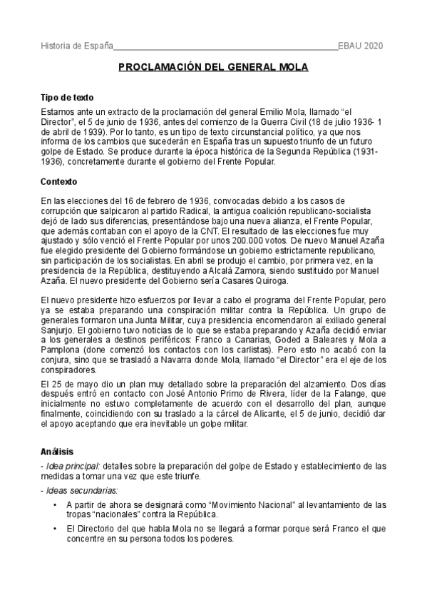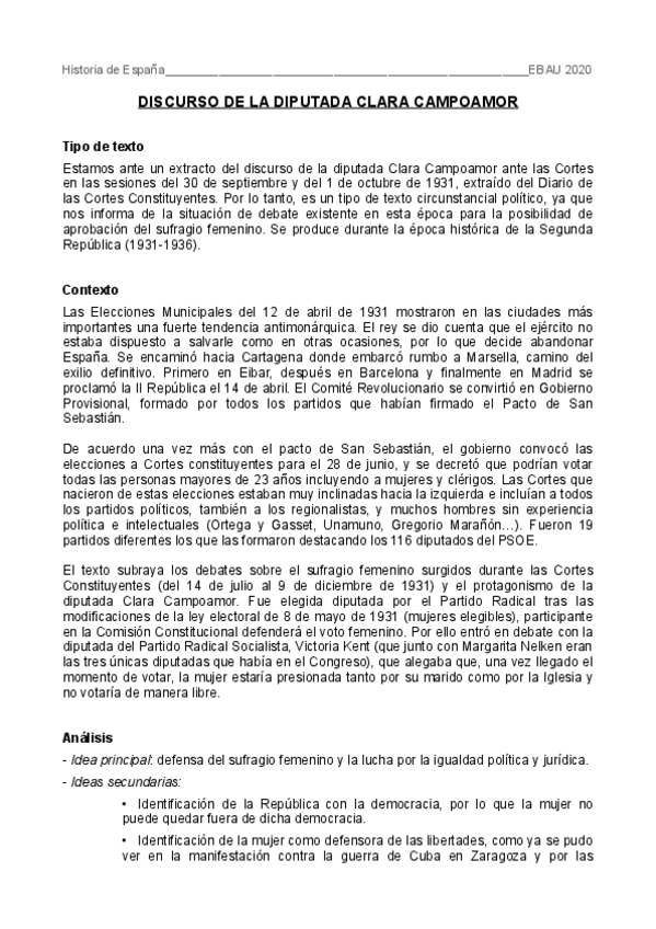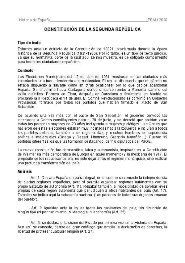 TODOS LOS COMENTARIOS ESTAN CORREGIDOS POR MI PROFESORA. Los comentarios estan estructurados en: clasificación (que texto es y tipo de texto), contexto histórico (sacado del temario del curso), análisis (de las ideas principales y secundarias) y conclusió