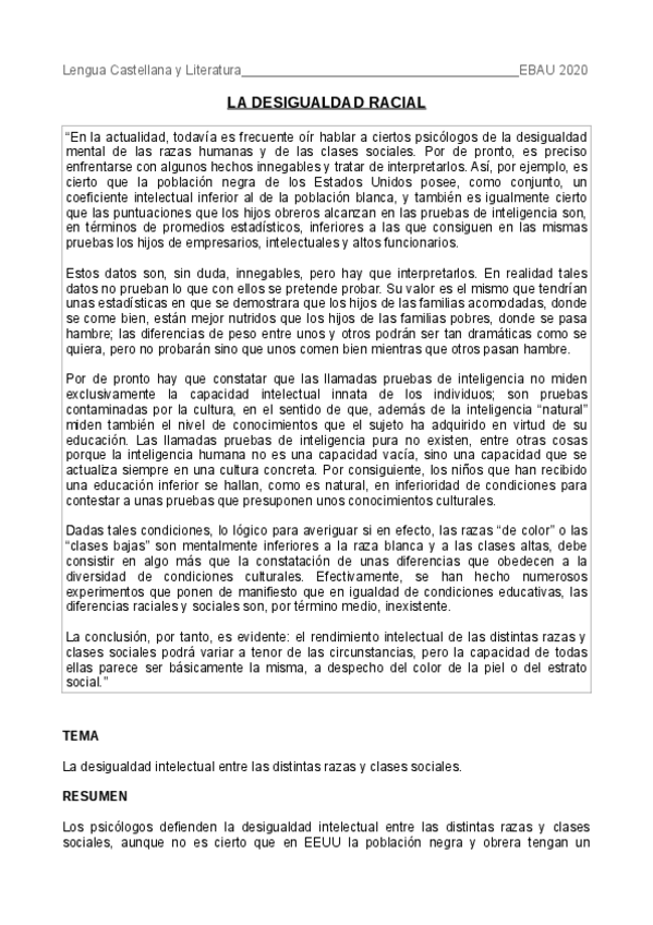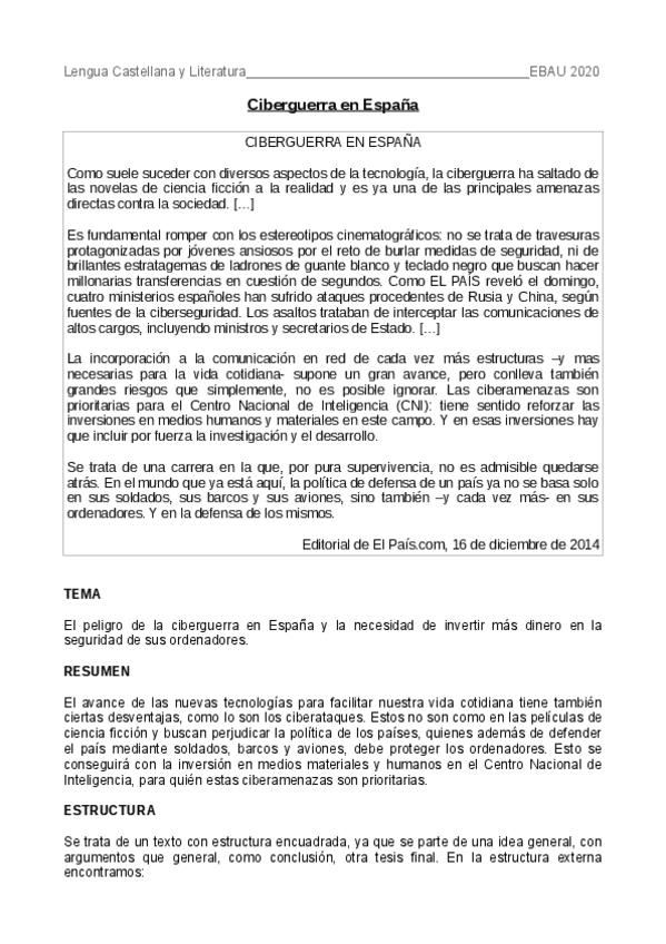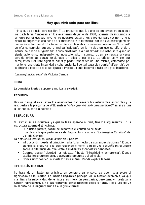 Tema, resumen, estructura, tipología y cohesión. Algunos tienen comentario crítico, pero eso es opinión del estudiante.