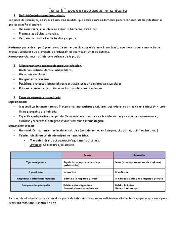 Temario inmunología