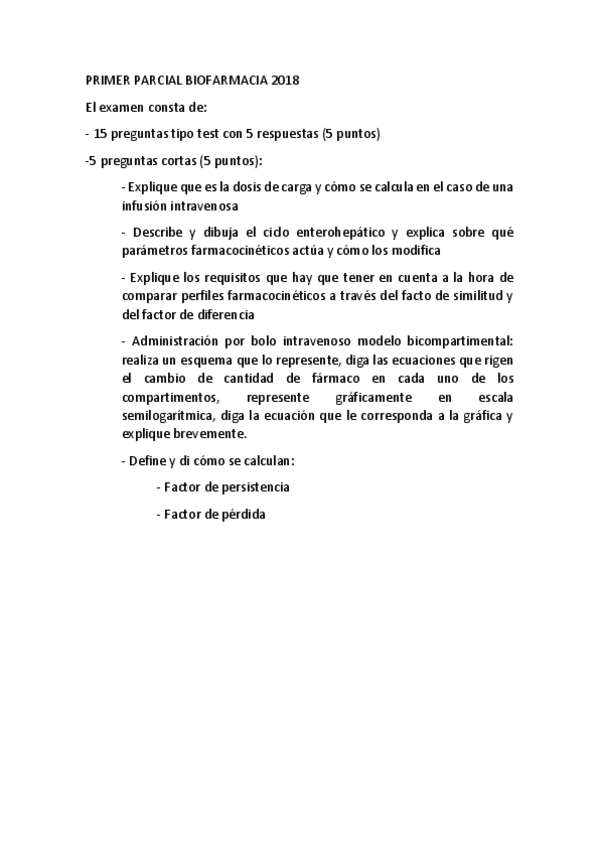 He publicado nuevos examenes de 4º Biofarmacia y Farmacocinética: PRIMER PARCIAL BIOFARMACIA 2018.pdf