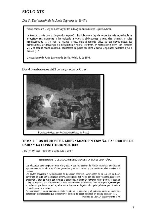 Recopilación de todas las prácticas que han caído y pueden caer en el examen de selectividad de Historia de España del siglo XIX. Es decir del tema 1 hasta el 8.