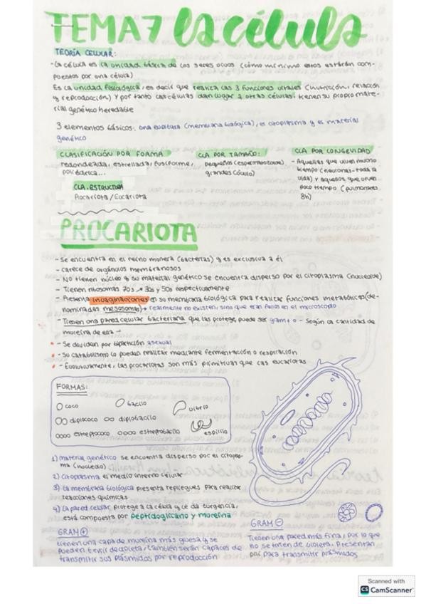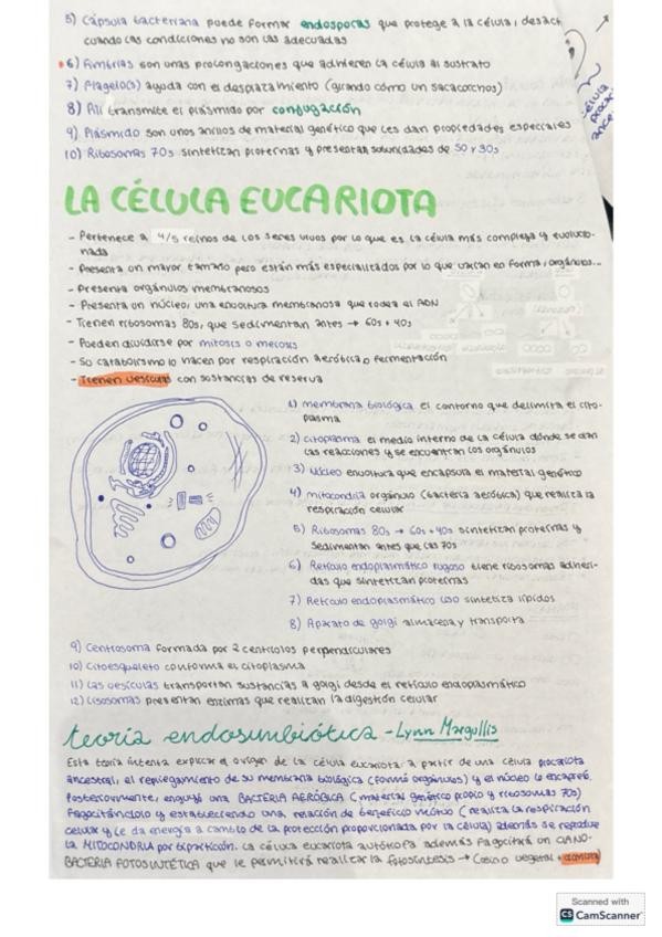 Apuntes/ resumen de clase de segundo de bachillerato orientado a la PAU del tema 7 de biología, La célula (general). Ejemplificaciones y datos de interés que no incluyen en libros pero entra en el temario. Célula eucariota y procariota y sus orgánulos des