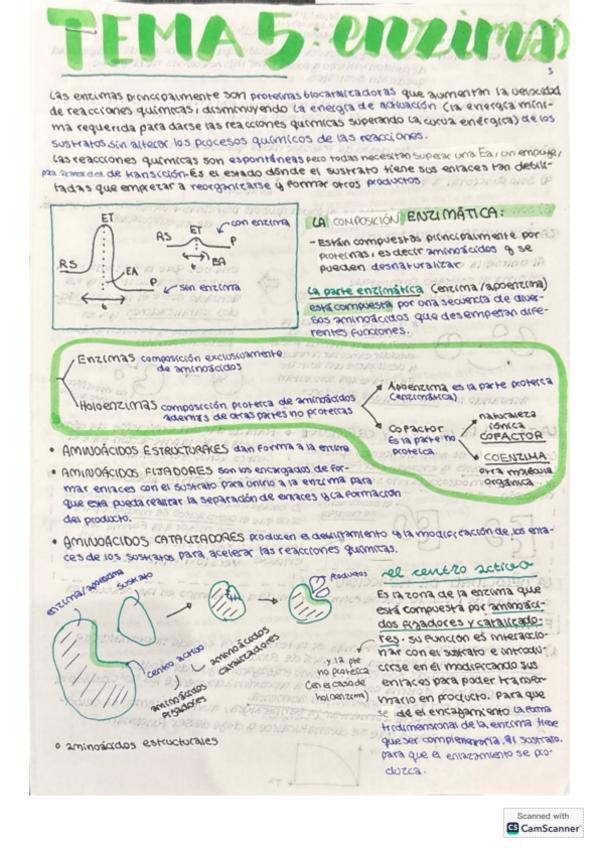 Apuntes/ resumen de clase de segundo de bachillerato orientado a la PAU del tema 5 de biología dentro del apartado de biomoléculas las enzimas y las vitaminas cómo continuación de las proteínas. Ejemplificaciones y datos de interés que no se incluyen en l