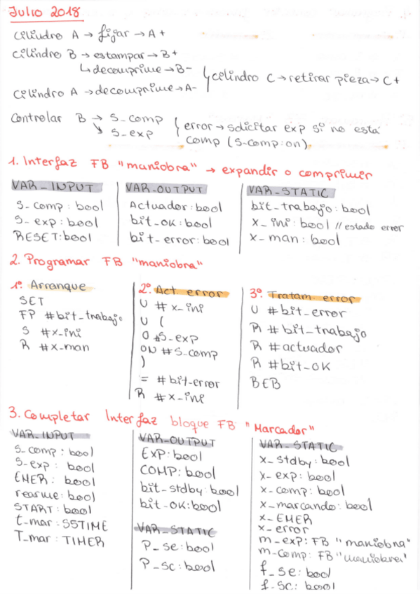 He publicado nuevos examenes de 3º Automatización Industrial: Soluciones Programación Junio y Julio AUTO