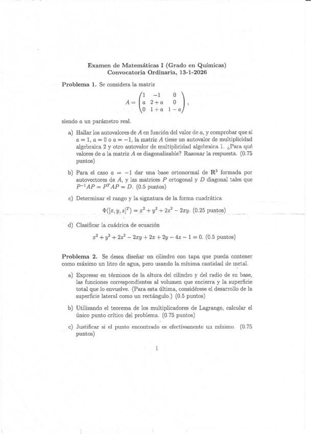 He publicado nuevos examenes de 1º Matemáticas I: Examen-ordinaria-2025-26.pdf