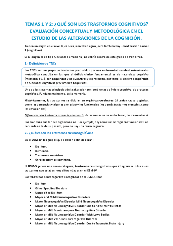 Apuntes Trastornos neurocognitivos SOBRESALIENTE