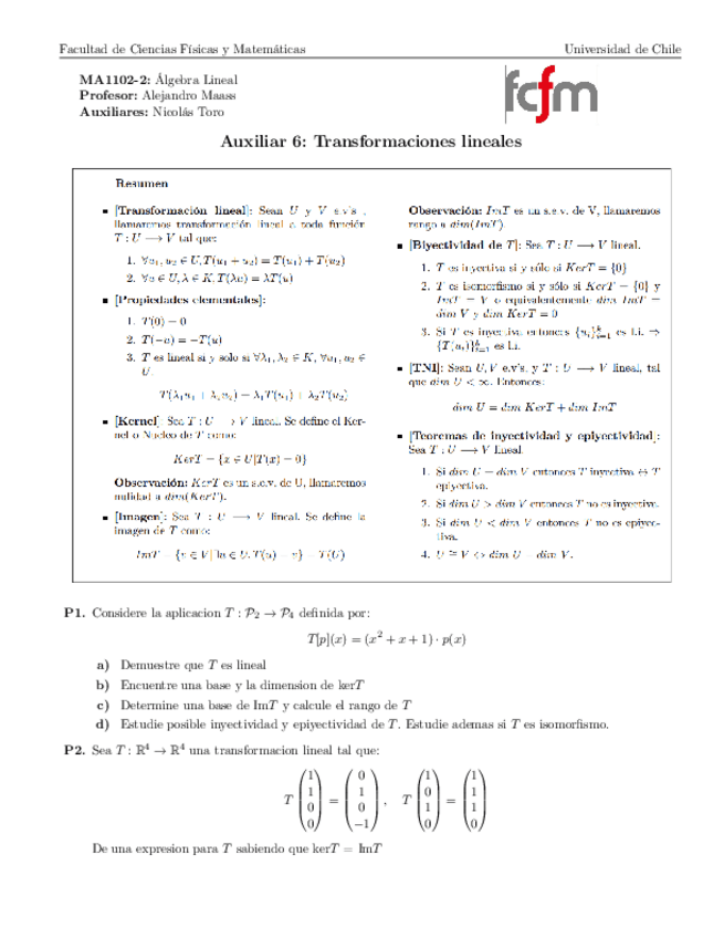 He publicado nuevos ejercicios de 1º Álgebra Lineal: Aux06Transformacioneslineales.pdf