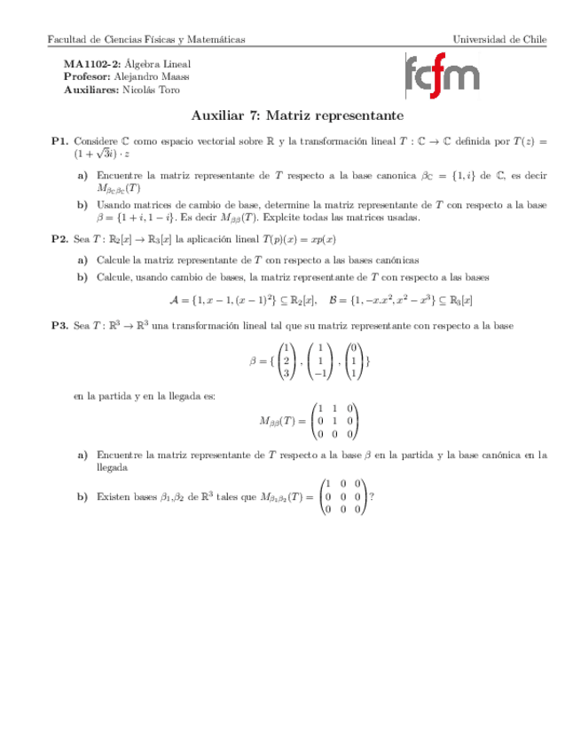 He publicado nuevos ejercicios de 1º Álgebra Lineal: Aux07Matrizrepresentante.pdf