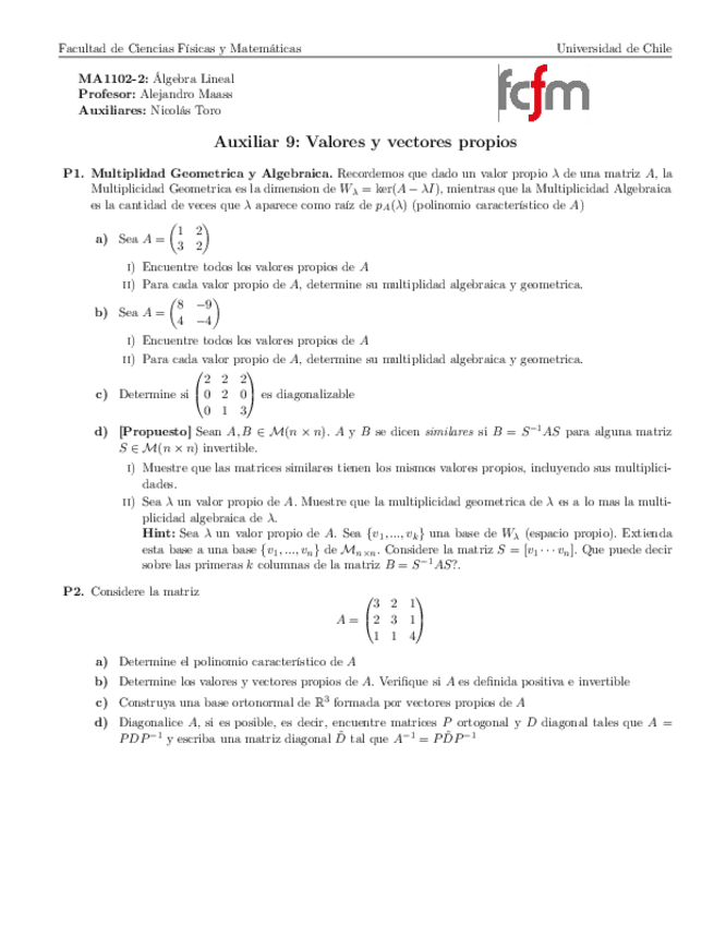 He publicado nuevos ejercicios de 1º Álgebra Lineal: Aux09Valoresyvectorespropios.pdf