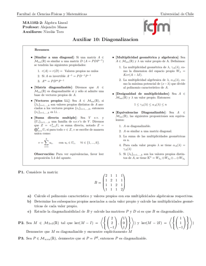 He publicado nuevos ejercicios de 1º Álgebra Lineal: Aux10Diagonalizacion.pdf