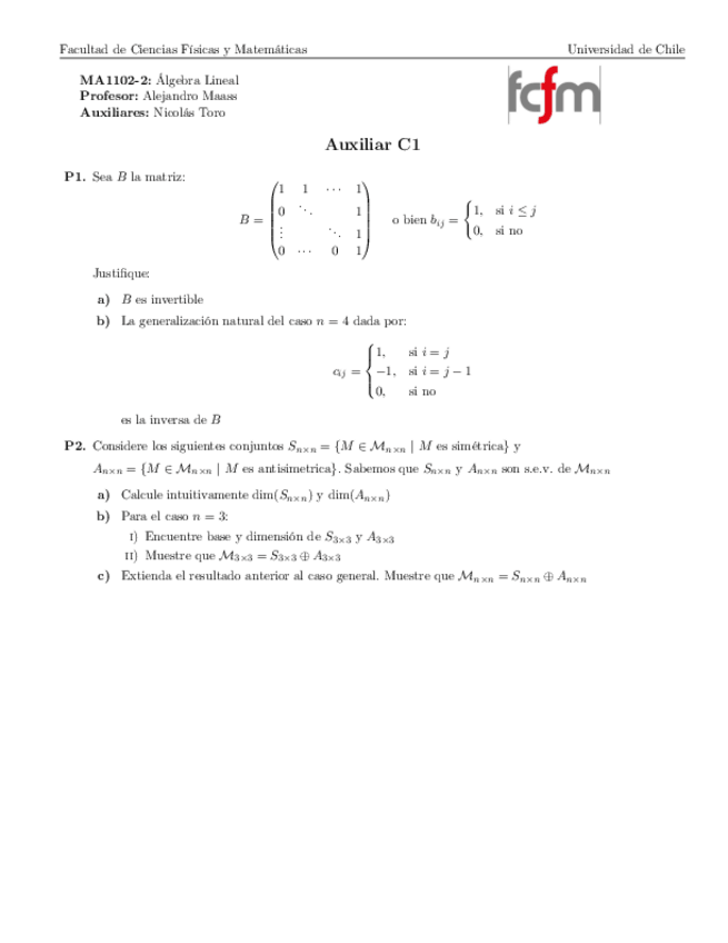 He publicado nuevos ejercicios de 1º Álgebra Lineal: Aux08PreparacionC2.pdf