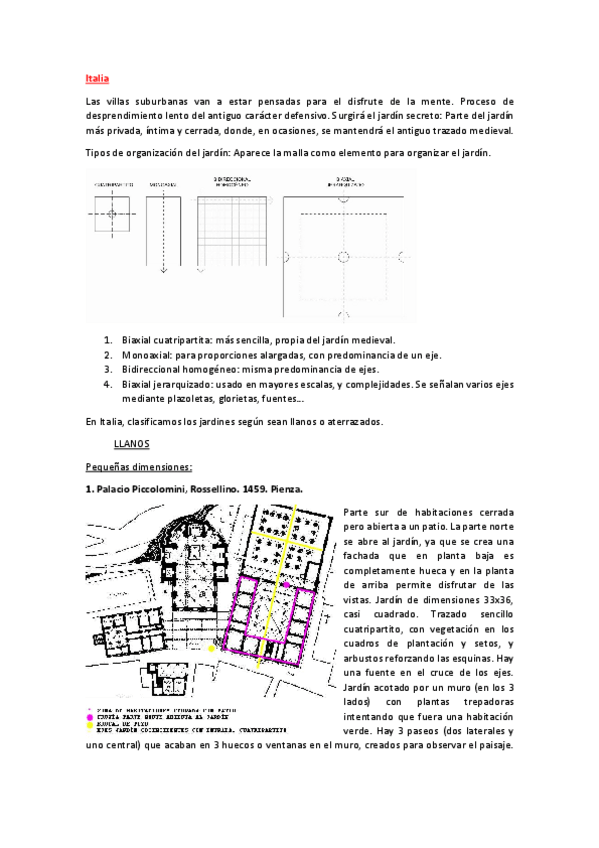 Todo lo que hace falta saber para el examen, las descripciones de los jardines, los recorridos y los elementos marcados.