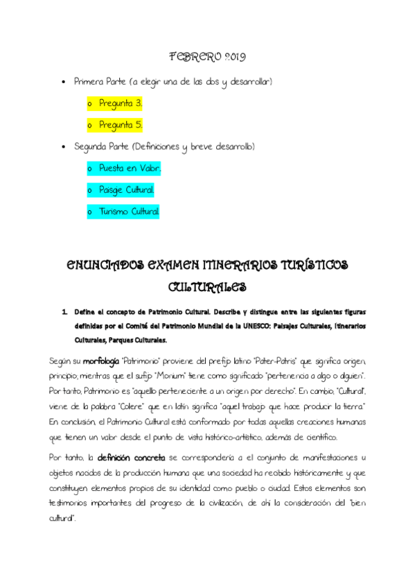 Apuntes redactados de lo que puede caer en examen. Subrayado lo que cayó en febrero de 2019
