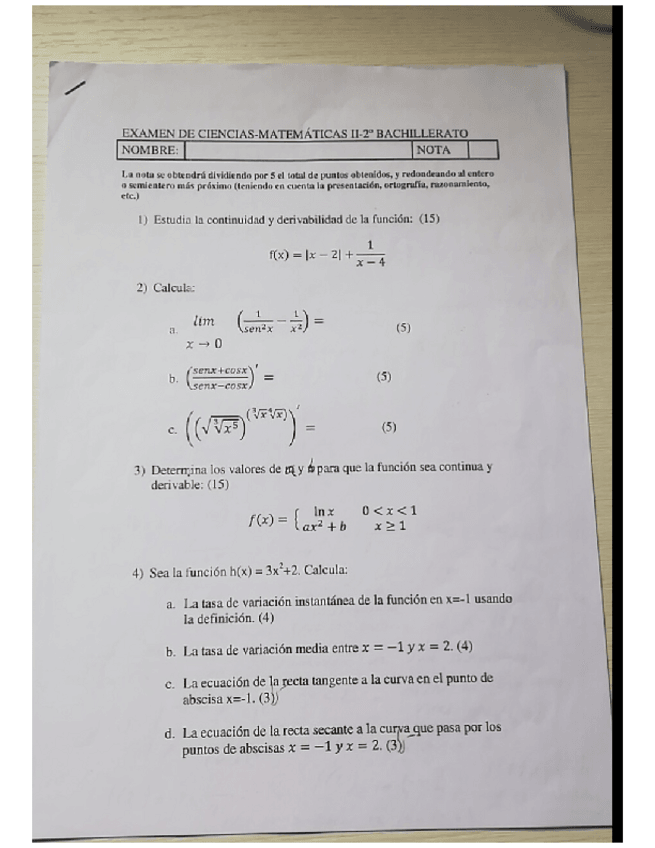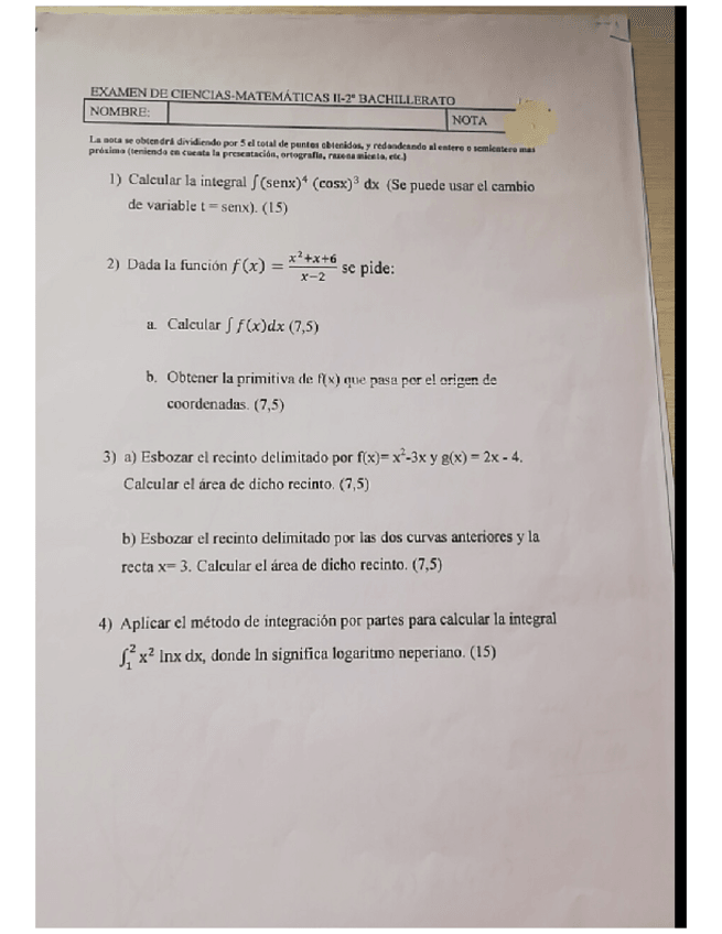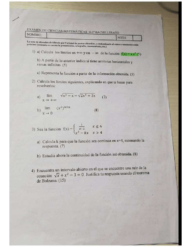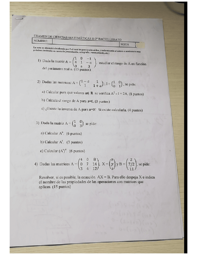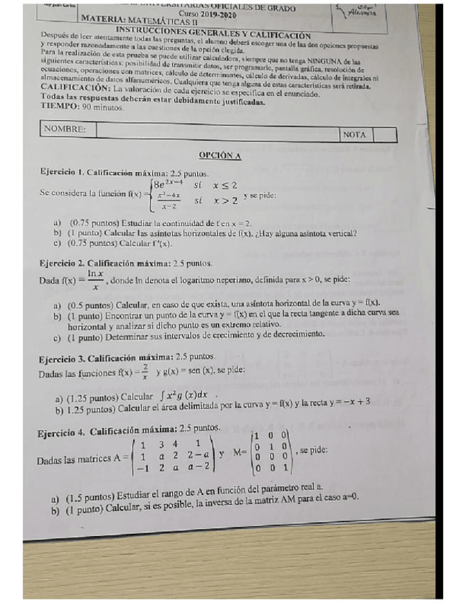 Exámenes MatematicasII (2 BACH)