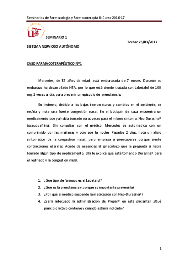 He publicado nuevos apuntes de 4º Farmacología y Farmacoterapia II: SEMINARIO 4. SNA 2016-17plataforma(1).pdf