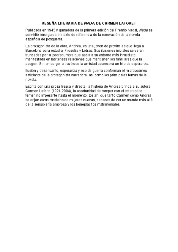 He publicado nuevos apuntes de Lengua Castellana y Literatura II: Resena-Nada-de-Laforet.pdf