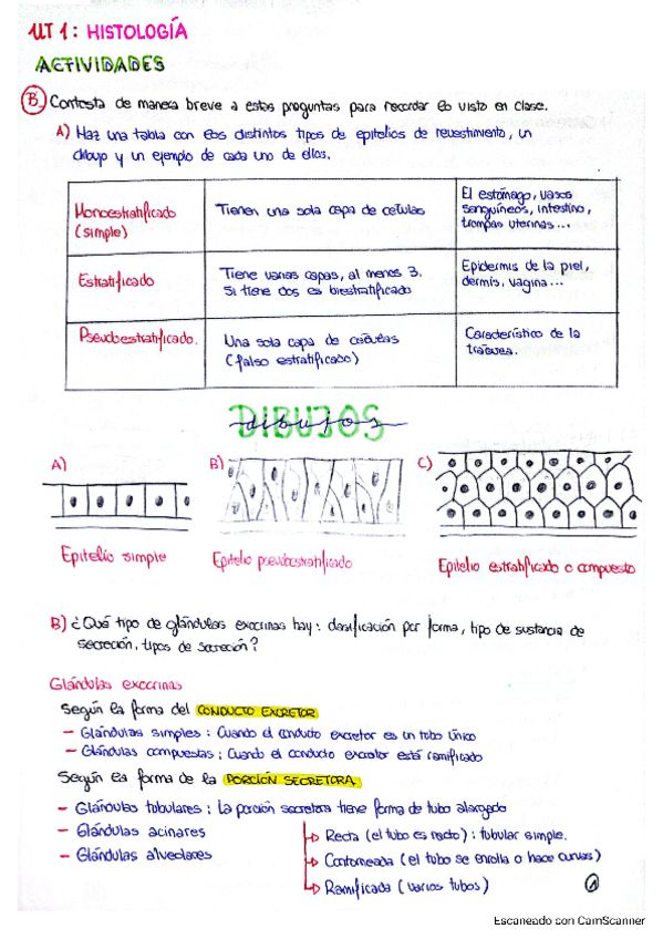 Ejercicios de repaso UT 1 - HISTOLOGÍA (Tejidos) para comprender mejor el temario. Incluye dibujos, esquema de los diferentes tipos de tejidos así como actividades para entender mejor diferentes conceptos.