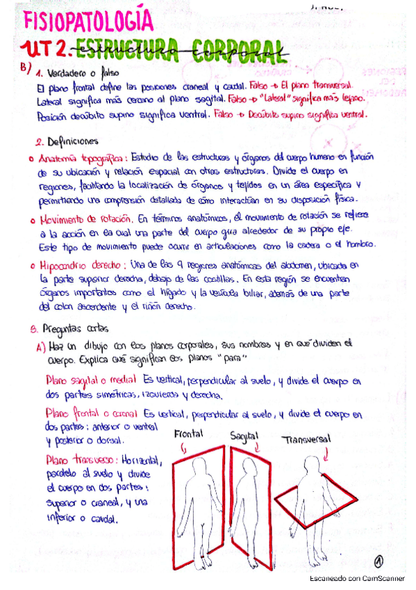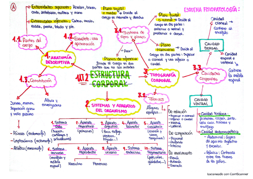 Ejercicios de repaso UT 1 - Estructura corporal y términos. Estos ejercicios son de guía para poder comprender mejor la estructura general de nuestro organismo. Incluye esquema visual.