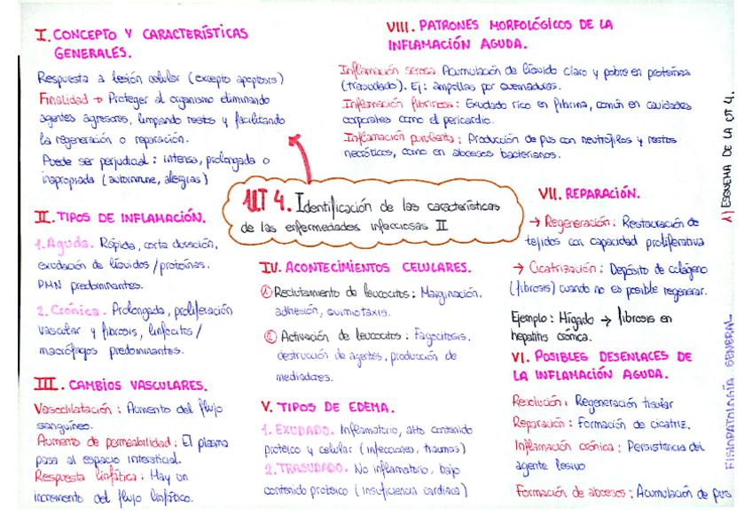 Ejercicios de repaso de la UT 4 - Inflamación. Dentro del documento se encuentran diversos ejercicios que pueden ayudar a comprender mejor el temario. así como un esquema general de la unidad.