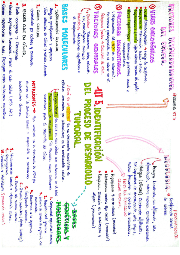 Actividades de repaso de la UT 5 - El desarrollo tumoral (Neoplasia). En este documento se encuentran actividades que ayudarán a entender diferentes conceptos, definiciones y diferencias de la unidad. Además. se incluye un esquema estructurado y visual de