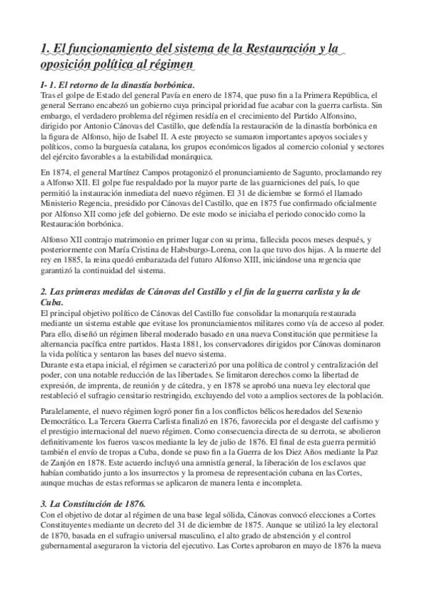 El funcionamiento del sistema de la Restauración y la oposición política al régimen-Crisis del 9:-Los cambios sociales del siglo XIX//+Resumen de cada