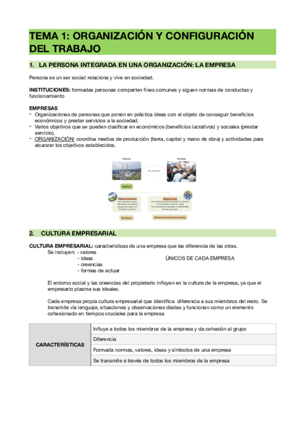 Tema uno: organización y la configuración del trabajo Tema dos: la comunicación en la empresa