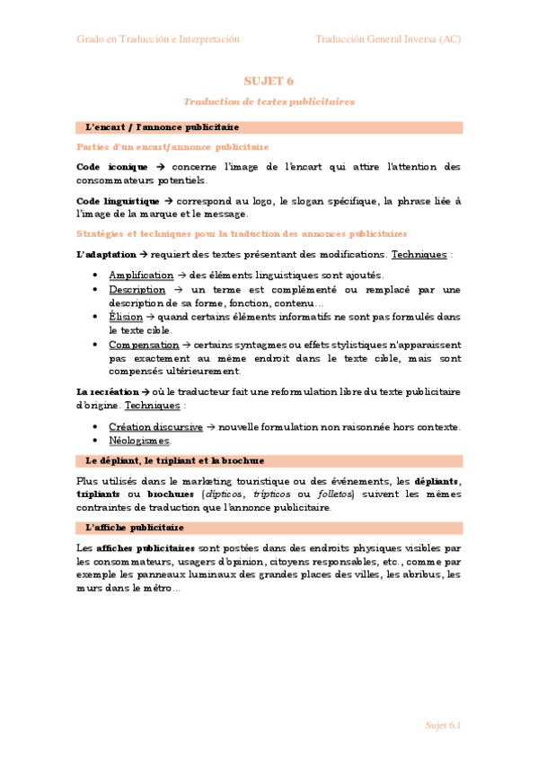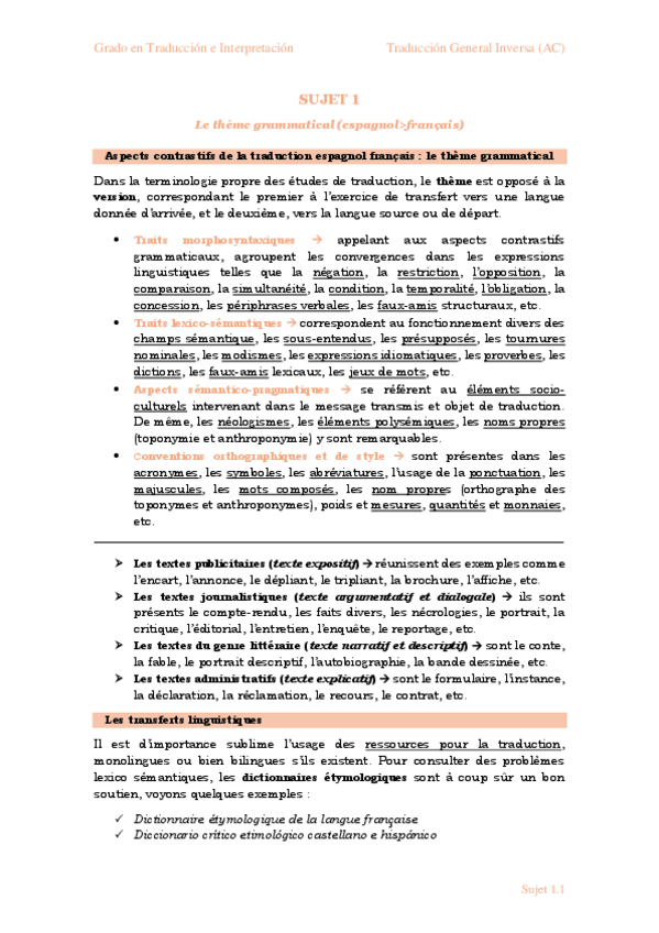 He publicado nuevos apuntes de 3º Traducción General Inversa (Ac) (Español-francés); o Traducción General Inversa (Ac) (Español-alemán): APUNTES