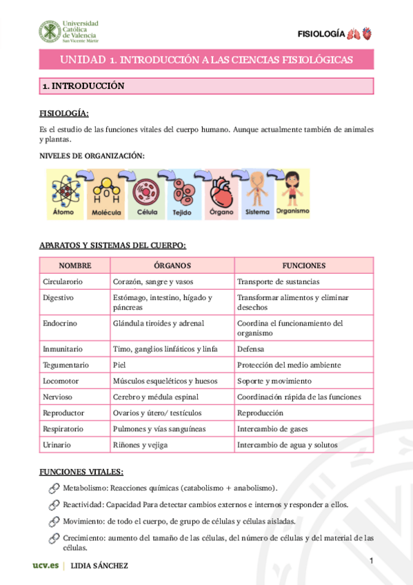 He publicado nuevos apuntes de 1º Fisiología Humana: Fisiología