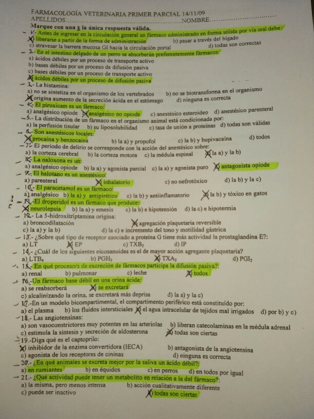 He publicado nuevos examenes de 2º Farmacología Veterinaria: Exámenes Varios 1 (fotos)