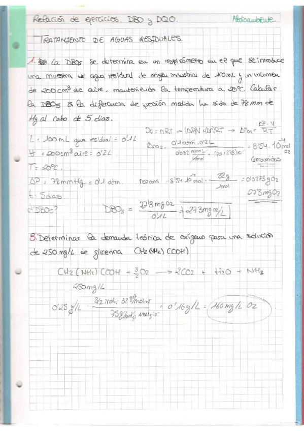 He publicado nuevos apuntes de 3º Tecnología del Medio Ambiente: ejercicios DBO y DQO.pdf