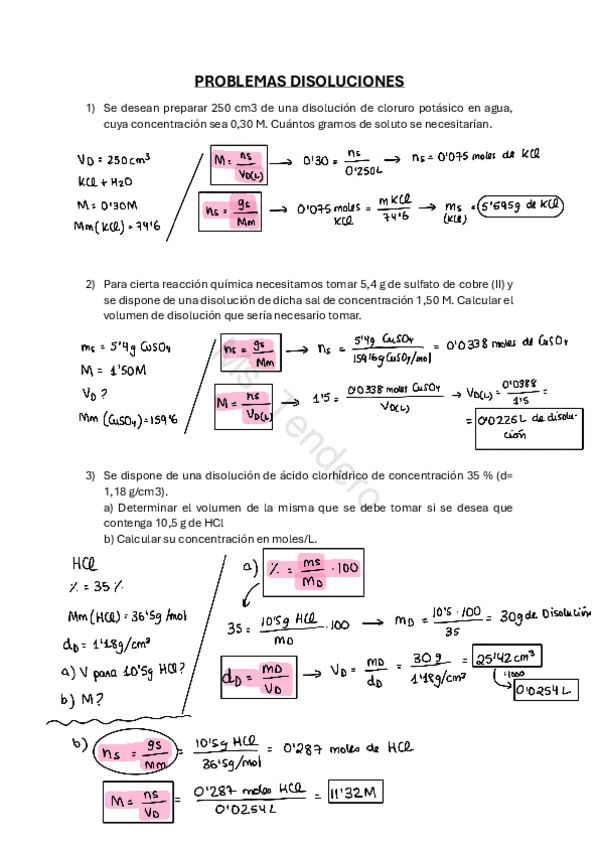 Ejercicios para repasar problemas de estequiometría, reactivo limitante-exceso y disoluciones (1º Bachillerato).