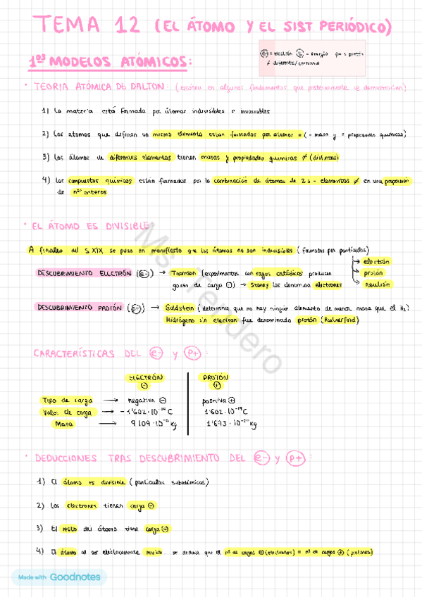 Resumen tema El Átomo y el Sistema Periódico, Nivel 4º ESO, con ejercicios resueltos. (Abreviaciones que pueden aparecer: e- (electrón), E (energía), cte (constante), = (igual), ≠