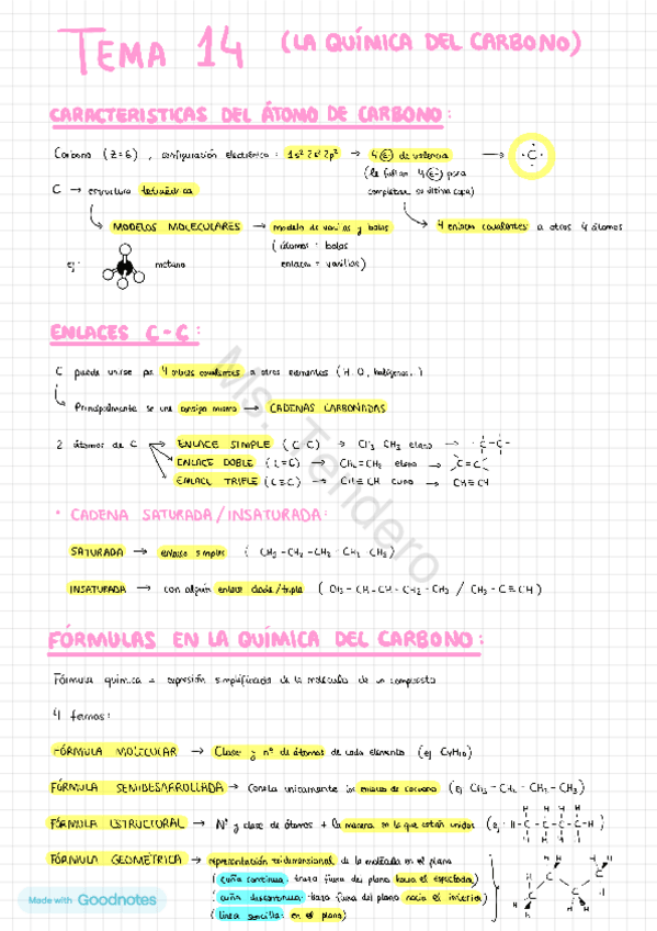 Resumen completo del tema de iniciación a la química orgánica: explicación y propiedades del carbono junto con los diferentes compuestos que puede formar (Nivel 4ºESO).