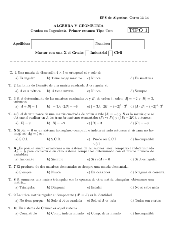 He publicado nuevos examenes de 1º Álgebra y Geometría: PARCIALES
